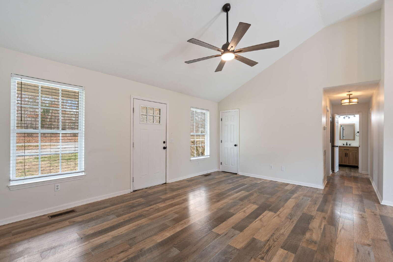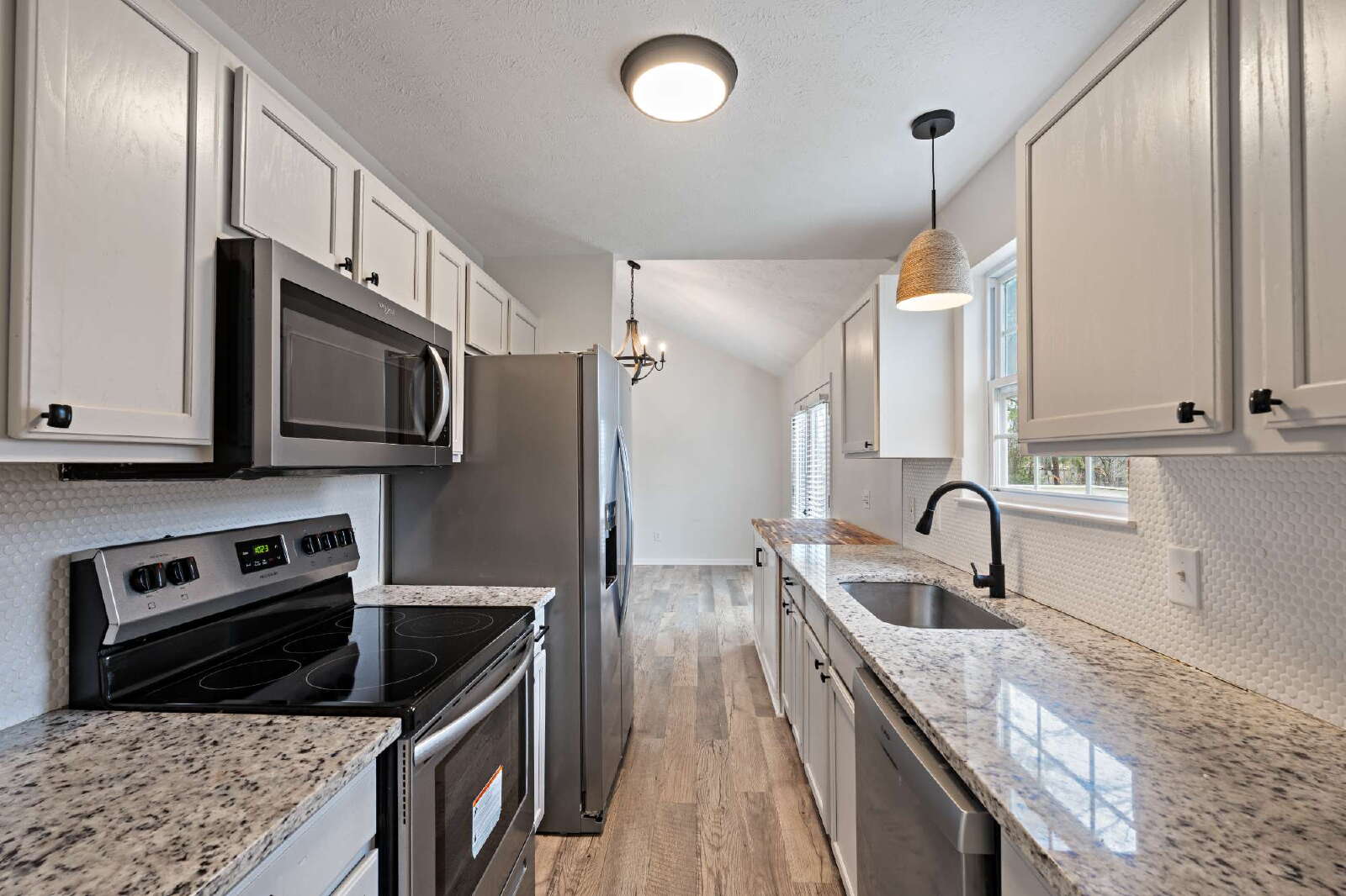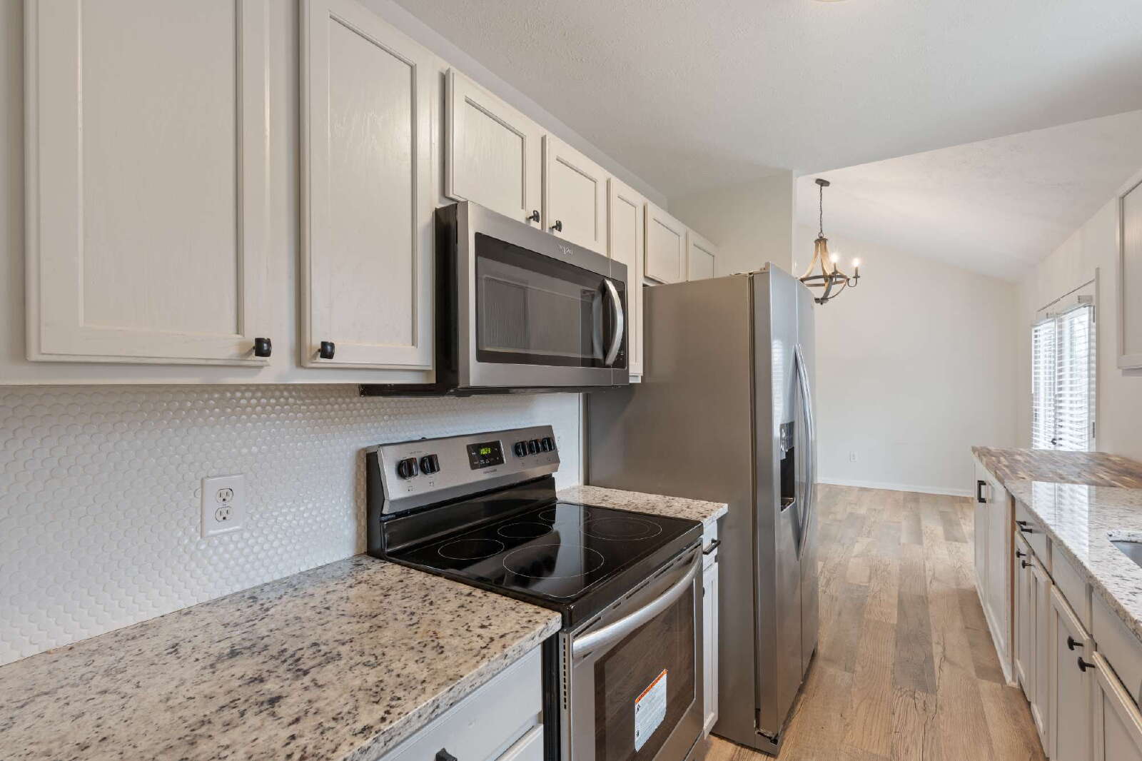 Step inside to find LVP flooring, updated lighting fixtures, and ceiling fans. The kitchen features gorgeous granite countertops, a new tile backsplash, and plenty of cabinet space—perfect for everyday living and entertaining. Both bathrooms have been tastefully updated, and the spacious primary suite offers a large master bedroom for your own private retreat.